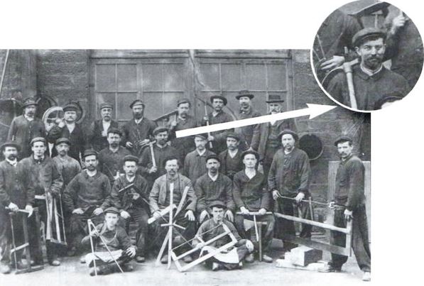 Photo de l’équipe de charpentiers qui travaillaient sur MARCOING. Mon grand-père est avec une herminette sur l’épaule droite et il semble qu’il ait un pansement sur la joue gauche donc après son agression et peu de temps avant sa mort !