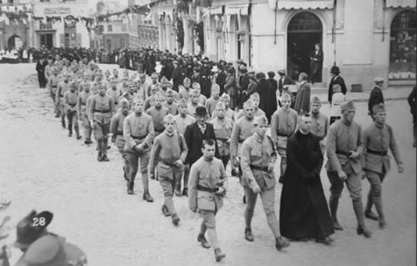 99/9 : Qui pourrait me dire quelle est cette cérémonie prise près de l’église Saint-Géry de CAMBRAI, qui eut lieu dans les années 1920 au cours de laquelle défila le 1er Régiment d’Infanterie. Au premier rang, on reconnaît Hugues BEYLARD, de Cambrai, soldat du 1er RI, futur membre de la Commission historique du Nord ?